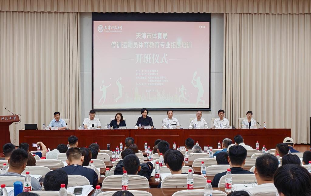 本站訊(通訊員 呂天宇)7月30日,我校承辦的“天津市體育局停訓(xùn)運(yùn)動員體育教育專業(yè)拓展培訓(xùn)”項目,在會議中心中報告廳舉行開班儀式。天津市體育局黨組成員、副局長李珊,天津師范大學(xué)黨委常委、副校長紀(jì)德奎教授出席開班儀式并講話。天津市體育局人事處、市體育綜合保障中心,我校研究生院、繼續(xù)教育學(xué)院負(fù)責(zé)同志,體育科學(xué)學(xué)院班子成員和部分教師以及參加培訓(xùn)的全體100名停訓(xùn)運(yùn)動員參加開班儀式。