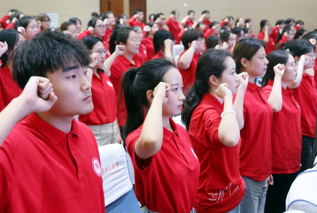全體“漢語橋”志愿者集體宣誓,立志弘揚“奉獻、友愛、互助、進步”的志愿精神,緊跟時代步伐,講好中國故事,傳播好中國聲音,追夢中文,不負韶華,用實際行動為推動構建人類命運共同體作出貢獻。