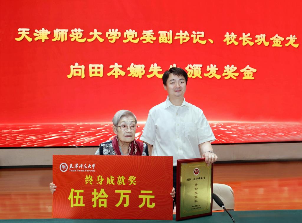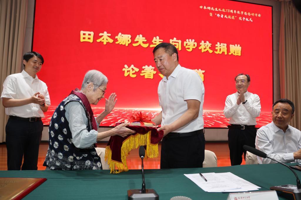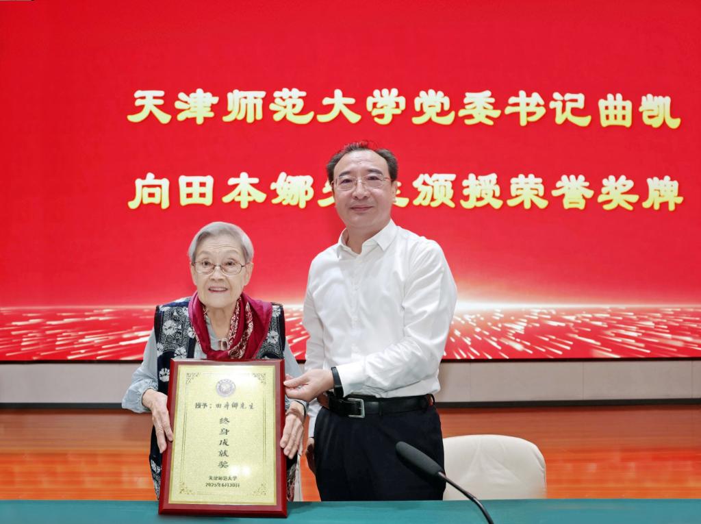 我校首次設立并頒發“終身成就獎”,不僅是對田本娜先生73載躬耕教壇、矢志育人所取得的開創性成就與卓越貢獻的最高褒獎,更是學校自覺弘揚教育家精神、尊崇時代“大先生”的鄭重宣示。天津師范大學將賡續傳承田先生寶貴精神財富,滋養培育更多新時代“四有”好老師與“大先生”,奮力書寫中國式教育現代化的師大答卷。