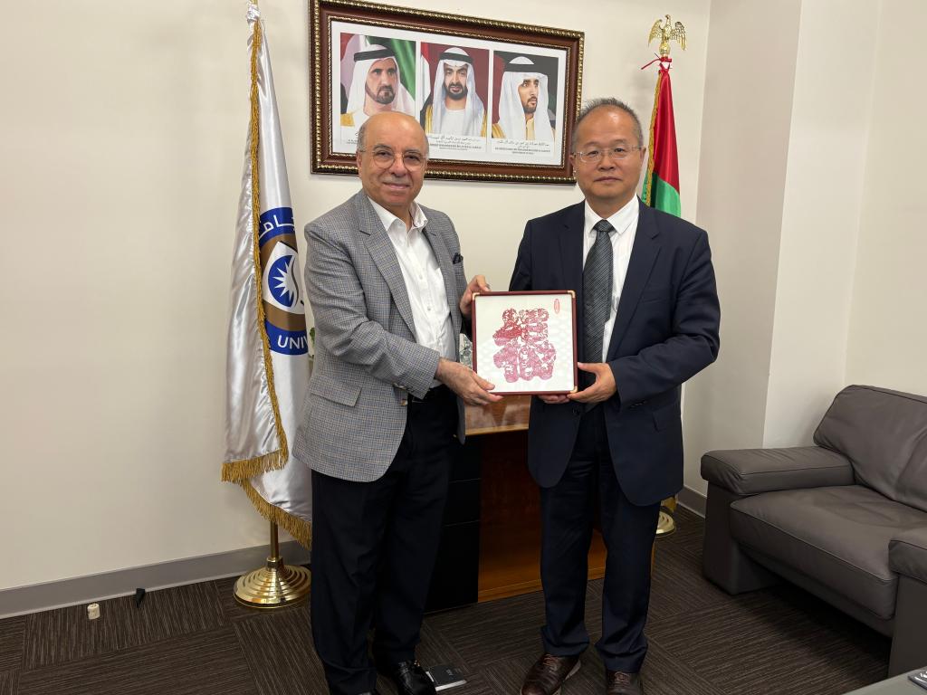 6月19日至20日,白學(xué)軍副校長出席了在阿聯(lián)酋迪拜大學(xué)舉辦的來華留學(xué)展。展會期間,他與迪拜大學(xué)副校長Hussain Al Ahmad進行了深入交流,并訪問了迪拜大學(xué)孔子學(xué)院,雙方圍繞國際中文教育等項目合作達成多項共識。隨后,代表團訪問了中國駐迪拜總領(lǐng)館,并與歐渤芊總領(lǐng)事舉行座談。座談會上,白學(xué)軍副校長介紹了我校在服務(wù)“一帶一路”教育合作中的創(chuàng)新舉措和突出貢獻。