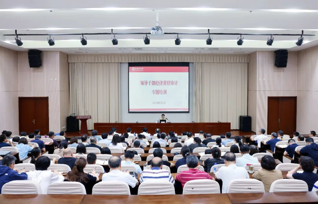 本站訊(通訊員 劉榮)為進一步增強我校領導干部及相關工作人員審計知識素養,壓實領導干部經濟安全主體責任,6月5日下午,學校舉辦領導干部經濟責任審計專題培訓,天津市審計局行政事業審計一處處長劉秀芳應邀作專題報告。全體校領導班子成員、派駐紀檢監察組和學校全體正處級干部、分管財務工作的副處級干部、附屬獨立核算單位主要負責人及兼職審計監督員,財務處、審計處全體人員參加培訓。