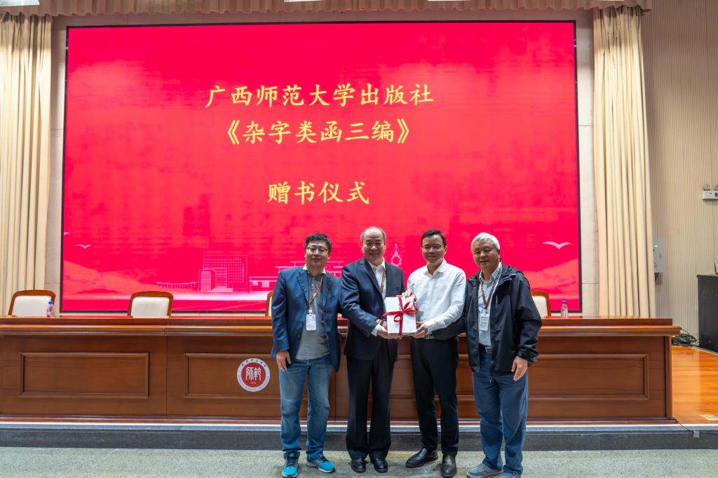 古籍保護研究院常務副院長姚伯岳教授作工作報告,并接受廣西師范大學出版社集團湯文輝總編輯捐贈的《雜字類函三編》。湯文輝回顧了雙方的合作經歷和取得的成績,并介紹了由天津師范大學兼職教授李國慶主持編纂的《雜字類函三編》的學術價值及其在雜字文獻研究中的重要意義。李國慶回顧了雜字文獻的歷史源流和學術研究史。
