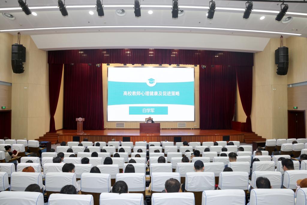 本站訊(通訊員 孫智慧 陸曦)5月15日下午,由天津師范大學與天津工業大學、天津理工大學主辦,聯合河北工業大學、天津中醫藥大學、天津外國語大學、天津城建大學、天津體育學院、天津職業大學、天津傳媒學院、天津機電職業技術學院等津冀區域11所院校,通過線上線下同步進行的方式,共同舉辦了《高校教師心理健康及促進策略》專題講座。本次講座邀請全國知名心理學家、我校黨委常委、副校長白學軍教授,針對高校教師心理健康調適的對策和方法進行了專題講授。