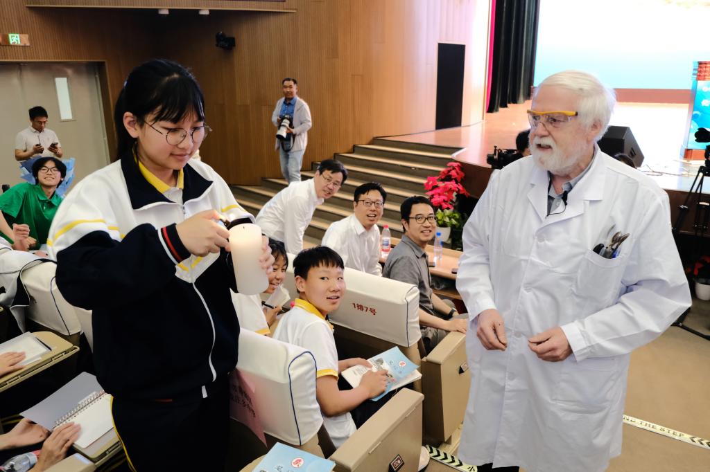 鞏金龍對戴偉教授來校表示熱烈歡迎,高度贊賞戴偉教授在化學科普領域的突出貢獻。他介紹了學校的發展歷程和在教師教育改革與基礎教育服務領域的創新實踐,并與戴偉教授就卓越教師培養、高??破战逃齽撔隆嵺`育人等方面展開交流,希望以科技節為契機進一步深化交流合作,優化師資培養模式,以高質量科學教育賦能學校高質量師資培養。
