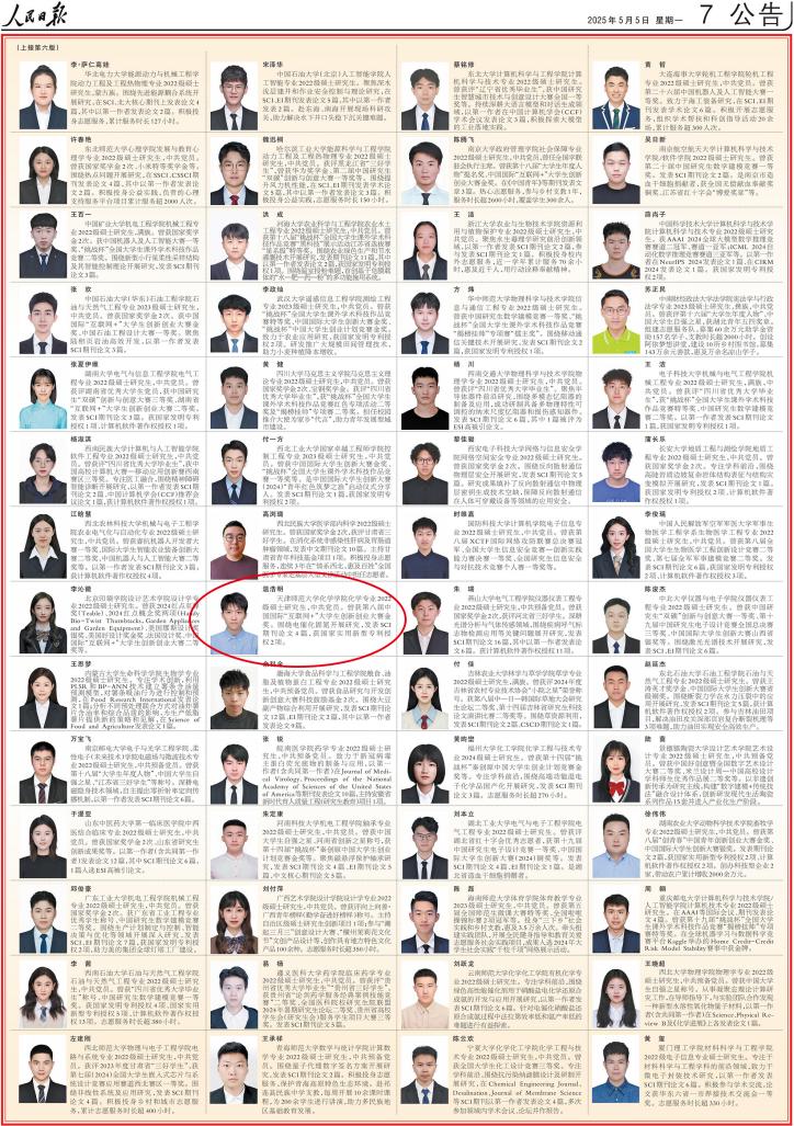 本站訊(通訊員 楊晨 烏日菡)2025年5月4日,《人民日報》刊登《2024年研究生國家獎學金獲獎學生代表名錄》,我校化學學院化學專業2022級碩士研究生溫浩明入選。