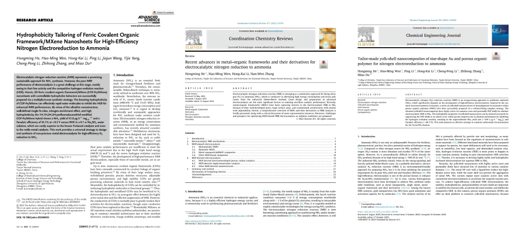 氨作為工業體系的核心化學品,是藥物合成與化肥生產的關鍵原料。碩士階段溫浩明加入李程鵬教授課題組,在賀鴻明副研究員指導下,專注于功能多孔材料的合成及其在電催化氮還原領域的應用研究,致力于通過綠色環保的電化學方法實現人工固氮,以緩解傳統哈伯法固氮帶來的環境負荷。其設計的電催化劑綜合性能達到領域先進水平,在實驗室環境下實現了氨的高效綠色合成。相關成果發表于《Coordin. Chem. Rev.》《Adv. Sci.》等SCI一區TOP期刊,獲批實用新型專利2項?!白源笠幌聦W期進入實驗室從事該方向研究,‘電催化’幾乎貫穿了我的整個求學生涯。創新之路雖荊棘滿布,但對科研的熱忱如同電催化劑,始終將沿途的挑戰轉化為前進的動能。”溫浩明始終以國家“雙碳”戰略為指引,深耕清潔能源與低碳材料領域,未來他將繼續以創新驅動發展,用青春智慧書寫科技報國新篇章,為建設美麗中國貢獻堅實力量,以青年的擔當為綠色低碳事業貢獻力量。