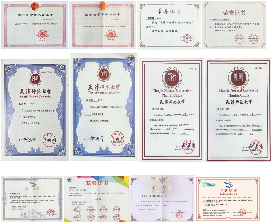 這份踏實讓溫浩明在學業路上收獲頗豐:兩次國家獎學金、一次王克昌獎學金文化科技創新獎、三次研究生學業獎學金和連續三年的專業第一,記錄著每一個深夜處理實驗數據的時光。