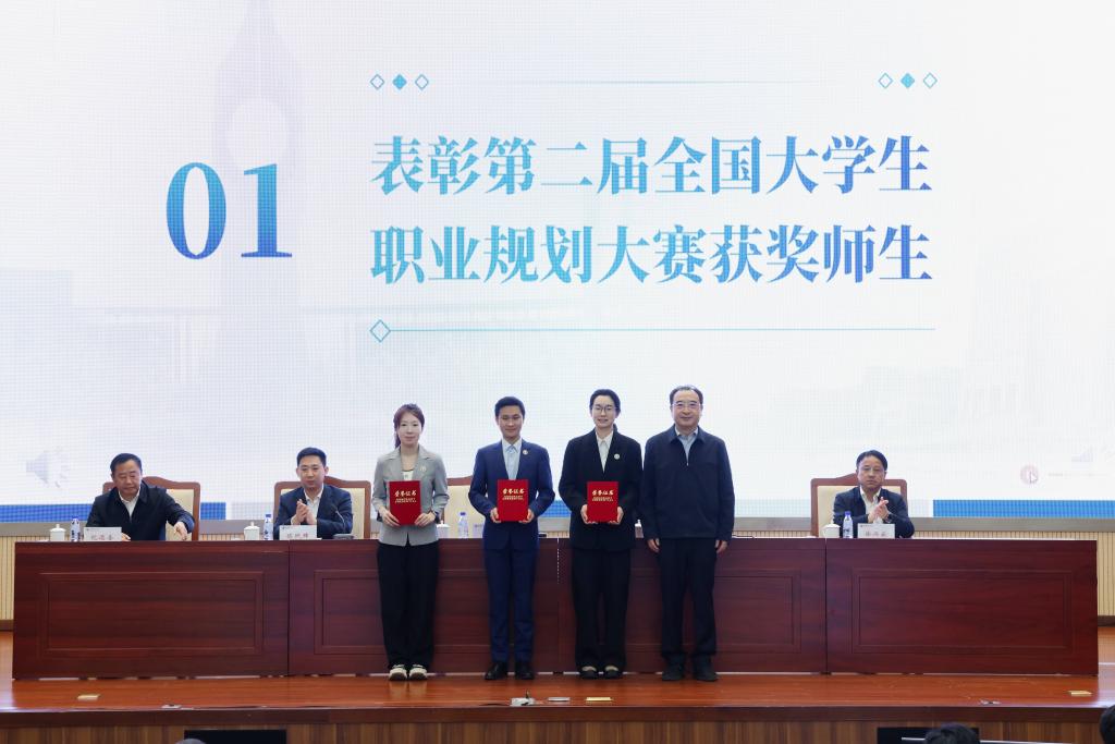 會上,校領導為第二屆全國大學生職業規劃大賽獲獎選手及指導教師代表頒發證書。計算機與信息工程學院2022級軟件工程專業本科生王佳雯、心理學部2021級應用心理學(師范)專業本科生曾芝程、政治與行政學院2023級政府治理與公共政策專業碩士研究生扈馨予依次上臺展示。教育學部、法學院、管理學院、美術與設計學院、計算機與信息工程學院主要負責同志圍繞學院典型特色做法進行交流發言。
