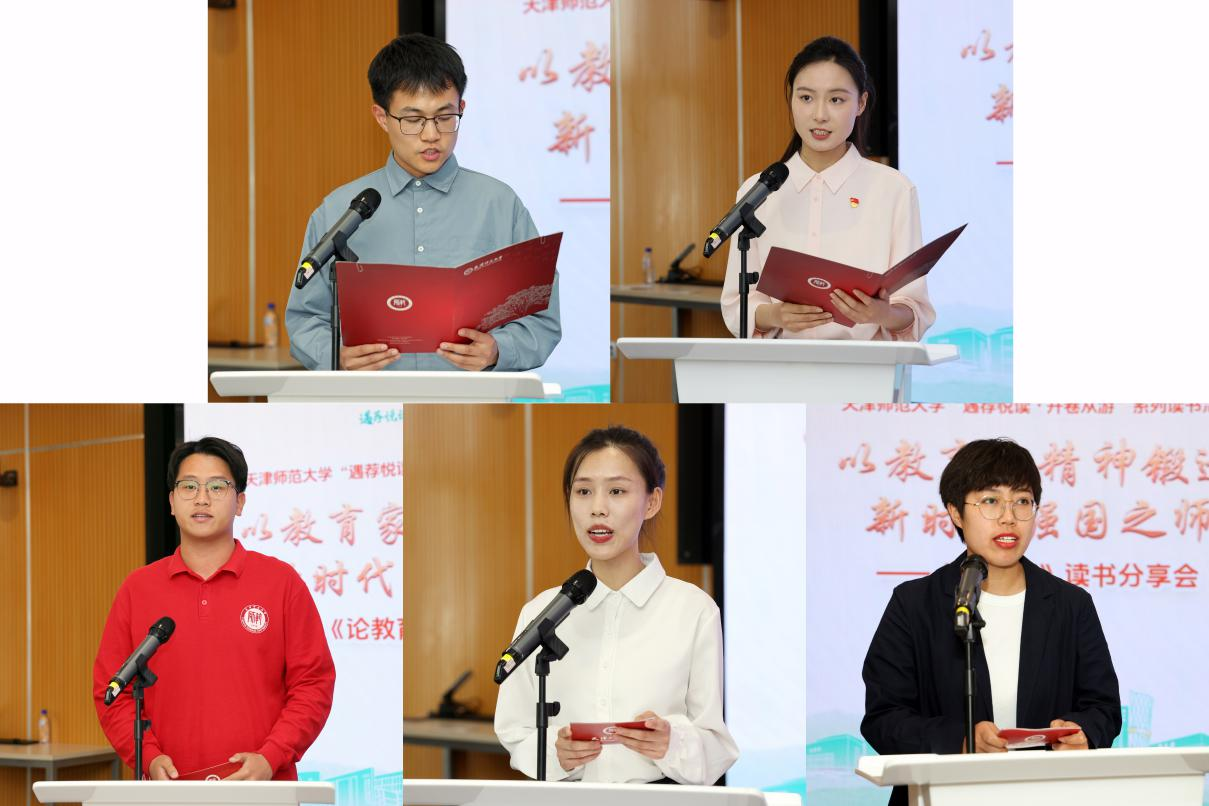 “全國高校黃大年式教師團(tuán)隊(duì)”指導(dǎo)學(xué)生、心理學(xué)部2021級(jí)博士研究生謝巖楓,“弘道修身”教育家精神宣講團(tuán)成員、政治與行政學(xué)院2024級(jí)碩士研究生任璐瑤動(dòng)情朗讀《回憶沈德立先生》《回憶徐大同先生》選段,帶領(lǐng)師生感悟教育家精神的深刻內(nèi)涵。“百萬學(xué)子回延安 延安精神進(jìn)校園”天津市大學(xué)生電商直播創(chuàng)業(yè)就業(yè)大賽參與者、經(jīng)濟(jì)學(xué)院2023級(jí)本科生沈嘉星,我校第24屆研究生支教團(tuán)成員、教育學(xué)部2023級(jí)碩士研究生郝一秀,肯尼亞內(nèi)羅畢大學(xué)孔子學(xué)院國際中文教師志愿者、國際教育交流學(xué)院2021級(jí)碩士研究生樊國景,結(jié)合《論教育》中《努力成為堪當(dāng)強(qiáng)國建設(shè)、民族復(fù)興大任的棟梁之才》篇章內(nèi)容,分享自身以實(shí)際行動(dòng)詮釋“擔(dān)當(dāng)·知行合一”的成長經(jīng)歷,激勵(lì)青年學(xué)子立報(bào)國強(qiáng)國大志向,做挺膺擔(dān)當(dāng)奮斗者。