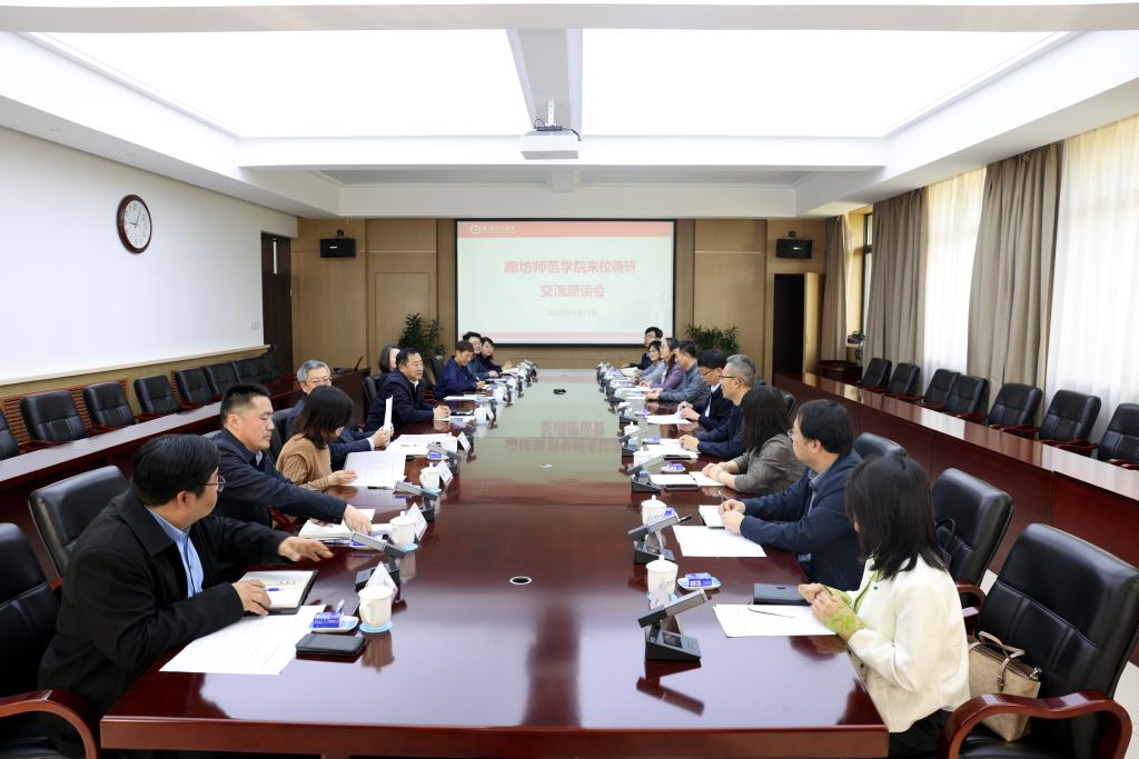 雙方與會同志分別就各自領域工作進行“點對點”有針對性的務實交流。廊坊師范學院黨政辦公室、組織部、人事處、教務處、高等教育研究中心、審計處、發展規劃與學科建設處,我校辦公室、黨委組織部、人事處、教務處、研究生院、合作交流處、審計處有關負責同志參加座談交流活動。