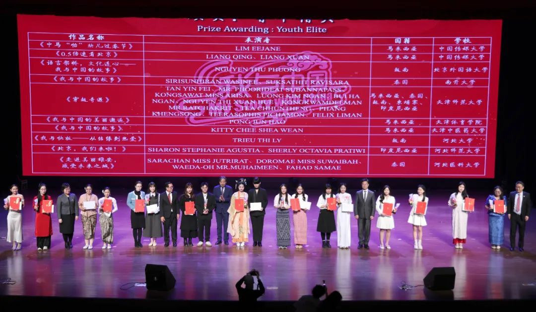 郁云峰、史忠俊、楊軍,泰國公使銜參贊陳善意,老撾教育體育部高等教育司司長拉萬,共同為“青年精英”獲獎人以及指導(dǎo)教師頒獎。鼓勵中外學(xué)子繼續(xù)為中國和東盟構(gòu)建更緊密命運共同體作出更多貢獻。
