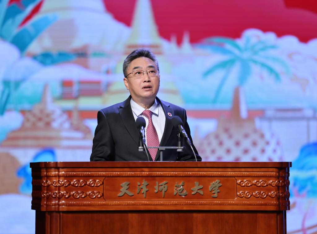 本站訊 3月19日,第二屆京津冀東盟國家學(xué)生“我與中國”中文故事視頻總展演活動在天津師范大學(xué)舉辦。本次活動主題為:語合越山海 心橋向未來。天津市副市長張玲,教育部中外語言交流合作中心黨委書記、主任郁云峰,中國—東盟中心秘書長史忠俊,中國教育國際交流協(xié)會秘書長楊軍出席活動。泰國、老撾、印尼、馬來西亞、越南、文萊、柬埔寨、菲律賓等東盟國家駐華大使館使節(jié)參加活動。京津冀教委(教育廳)、承辦學(xué)校北京外國語大學(xué)、河北師范大學(xué)、天津師范大學(xué)負責(zé)同志以及我市各相關(guān)高校負責(zé)同志;各區(qū)政府負責(zé)同志、各區(qū)教育局主要負責(zé)同志、市教委直屬學(xué)校主要負責(zé)同志,東盟10國學(xué)生代表以及京津冀東盟國家?guī)熒淼惹в嗳藚⒓印?/p>