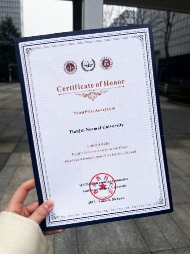 本站訊(通訊員 侯慧秀)3月7日至10日,由中國政法大學和國際刑事法院主辦,西南醫科大學承辦的第12屆國際刑事法院模擬法庭競賽(英文)在四川舉行。經激烈角逐,我校法學院學子組成的天津師范大學代表隊成功晉級庭辯口試階段,最終榮獲全國三等獎。