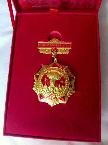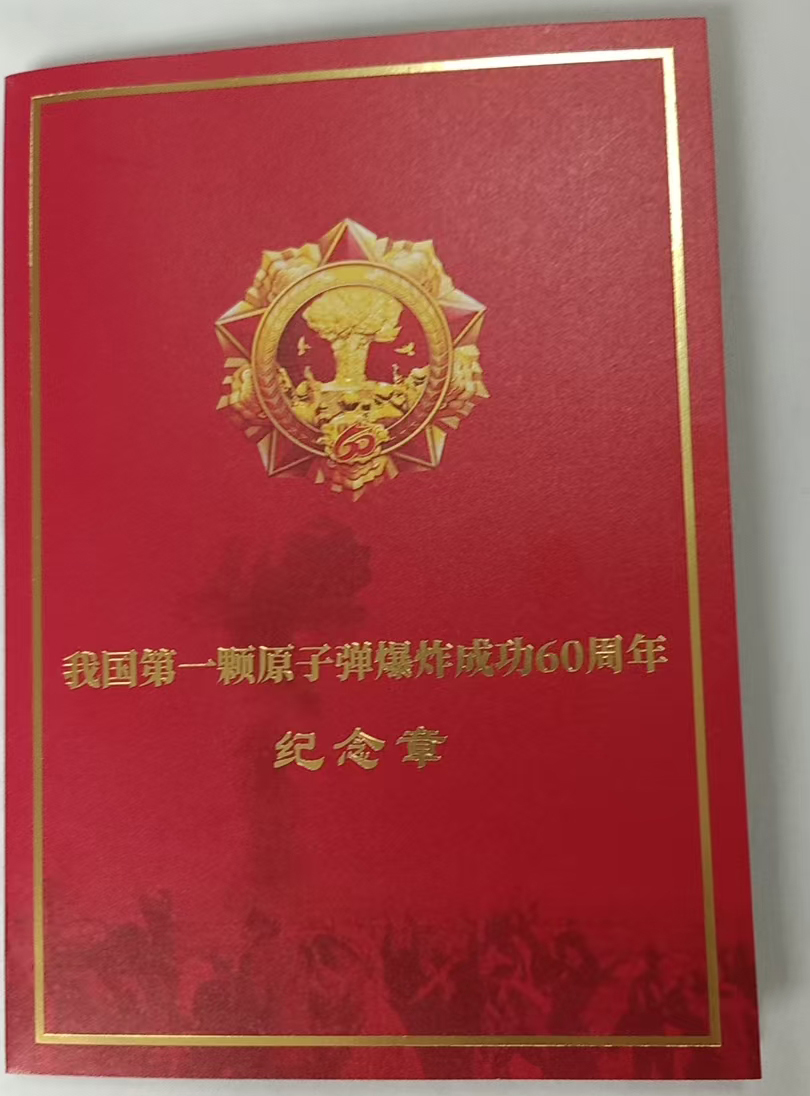 值此我國第一顆原子彈爆炸成功60周年之際,中核集團僅以此紀念章,永遠銘記在黨的領導下中國核工業走過的艱苦創業歷程和老一輩核工業人創造的不朽功勛,激勵新時代核工業人在新征程上大力弘揚“兩彈一星”精神,傳承“四個一切 ”核工業精神,踐行“強核報國、創新奉獻 ”新時代核工業精神,推動核工業高質量發展,全面推進核強國建設,為推進中國式現代化建設、實現中華民族偉大復興作出新的更大貢獻。