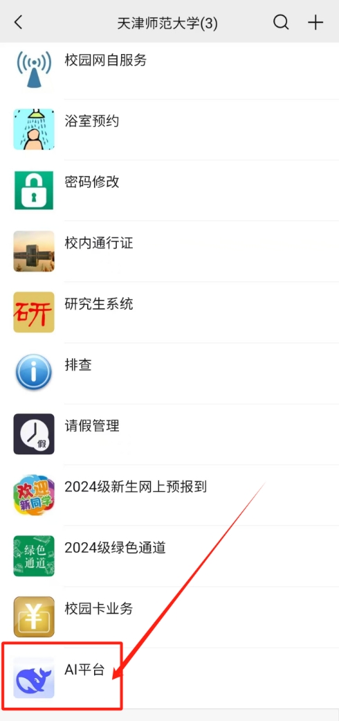 師生登錄天津師范大學企業微信,點擊“AI平臺”進入DeepSeek對話頁面。