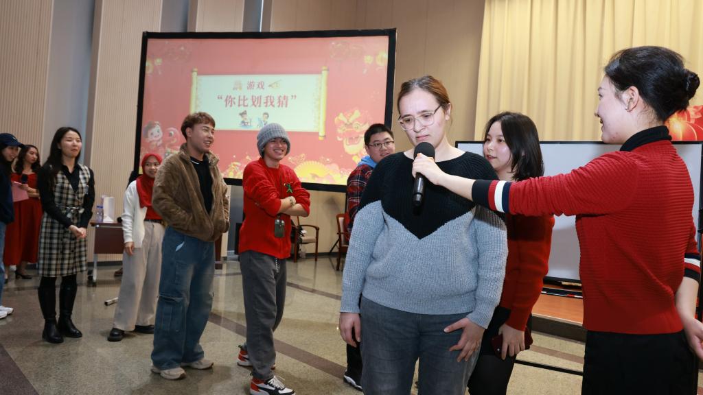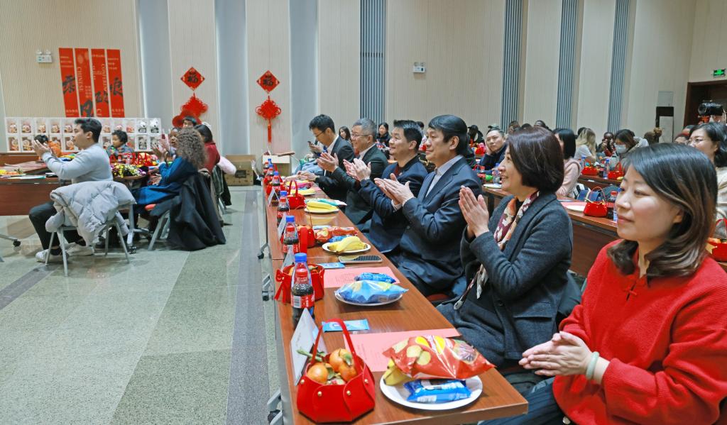 乙巳蛇年春節是“春節”申遺成功后的首個春節。聯歡活動特邀“曾氏華服”曾氏津派盤扣技藝非遺傳承人邢晉,帶領中外學生現場領略盤扣藝術,體驗春節的文化習俗。此外,活動還設置了書法體驗、新春福卡制作、游戲互動、歌舞才藝表演環節,中外學子在歡聲笑語和濃厚的節日氛圍中共度難忘時光。