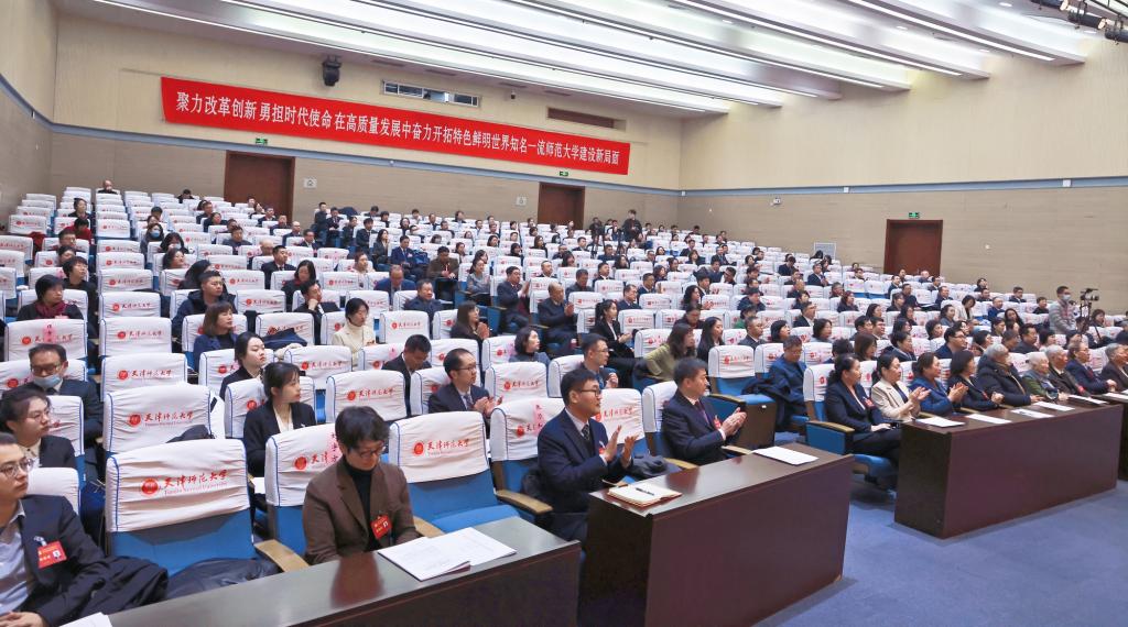 報告從七個方面部署了今后五年的發(fā)展任務(wù)和主要舉措。要全面落實新時代立德樹人工程,提高人才自主培養(yǎng)質(zhì)量,構(gòu)建具有鮮明師大特色的“三全育人”體系,創(chuàng)新卓越教師人才培養(yǎng)模式,深化拔尖人才培養(yǎng)改革,提高研究生培養(yǎng)質(zhì)量和水平。要充分發(fā)揮學科建設(shè)龍頭作用,塑造“雙一流”建設(shè)新動能新優(yōu)勢,建設(shè)一流引領(lǐng)的頂尖學科體系,優(yōu)化交叉融合的學科生態(tài)體系,數(shù)據(jù)賦能促進學科提質(zhì)發(fā)展。要系統(tǒng)推進有組織科研,提升科研創(chuàng)新綜合能力和水平,繁榮發(fā)展哲學社會科學研究,加強重大科技創(chuàng)新平臺建設(shè),推動有組織科研管理體制改革。要深入實施人才強校戰(zhàn)略,打造高素質(zhì)人才隊伍,大力弘揚教育家精神,全方位引進、培育、用好人才,深化人事制度改革。要持續(xù)彰顯教師教育優(yōu)勢特色,服務(wù)天津教育高質(zhì)量發(fā)展,構(gòu)建服務(wù)高質(zhì)量基礎(chǔ)教育師資體系,提升學校基礎(chǔ)教育引領(lǐng)力和影響力,加強基礎(chǔ)教育智庫科學決策咨詢。要全方位推進開放辦學,深化高水平國際交流合作,拓展高質(zhì)量國際合作渠道,構(gòu)建國際教育開放新格局,推動來華留學教育提質(zhì)增效。要統(tǒng)籌優(yōu)化辦學格局和治理體系,形成充滿活力、富有效能的發(fā)展生態(tài),高質(zhì)高效推動校園建設(shè),持續(xù)優(yōu)化學校內(nèi)部治理結(jié)構(gòu)提升治理能力,廣泛凝聚各方力量助力事業(yè)發(fā)展。