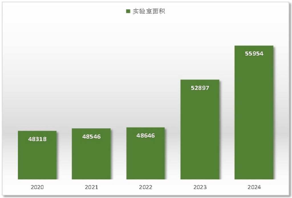 五年來,以公房調整為契機,學校公房資源布局逐步優化。我校本科實驗場所面積逐年增加,基礎實驗室和專業實驗室使用面積由2020年的48318平方米增長至2024年的55954平方米,五年內總面積增加7636平方米,增幅15.8%。至2024年,本科實驗場所生均面積為2.17平方米,同比增長5.34%,為本科教育教學工作高質量發展提供有力保障。