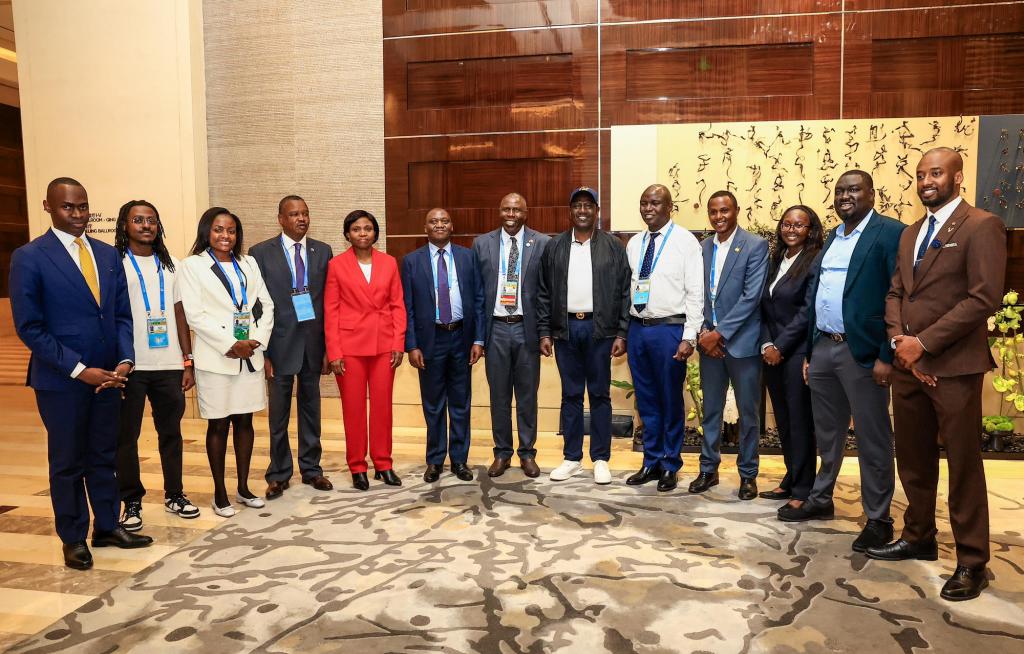 我校畢業(yè)生彼得(右四)在2024年中非合作論壇峰會期間擔(dān)任肯尼亞總統(tǒng)代表團翻譯