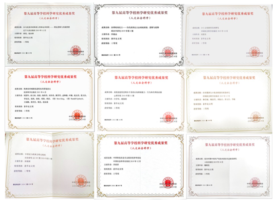 學校以習近平新時代中國特色社會主義思想統(tǒng)領哲學社會科學工作,以解決重大理論和現(xiàn)實問題為牽引,不斷強化高水平、標志性成果產出,引導廣大教師堅持“以中國理論闡釋中國實踐”,扎根中國大地繁榮發(fā)展中國特色哲學社會科學。五年來,學校共發(fā)表人文社會科學論文9900余篇,其中學科級和權威期刊論文230余篇,CSSCI收錄論文2000余篇,出版各類著作640余部。近三年,學校連續(xù)3篇高水平論文在《中國社會科學》發(fā)表。五年來,廣大教師堅持理論聯(lián)系實際,積極服務黨和國家發(fā)展大局,在《人民日報》《光明日報》《經(jīng)濟日報》《解放軍報》等報刊陣地發(fā)表理論文章230余篇。標志性成果的持續(xù)產出催生出一大批科研成果獎勵,獲獎質量和數(shù)量再創(chuàng)新高。五年來,學校獲高等學校科學研究優(yōu)秀成果獎(人文社會科學)16項,其中一等獎1項,二等獎5項,三等獎8項,青年成果獎2項;獲天津市社會科學優(yōu)秀成果獎106項,其中特等獎3項,一等獎23項,二等獎34項,三等獎46項。此外,我校還獲全國教育科學研究優(yōu)秀成果獎二等獎2項,郭沫若中國歷史學獎、第十屆孫平化日本學學術獎等高級別科研專項獎9項。