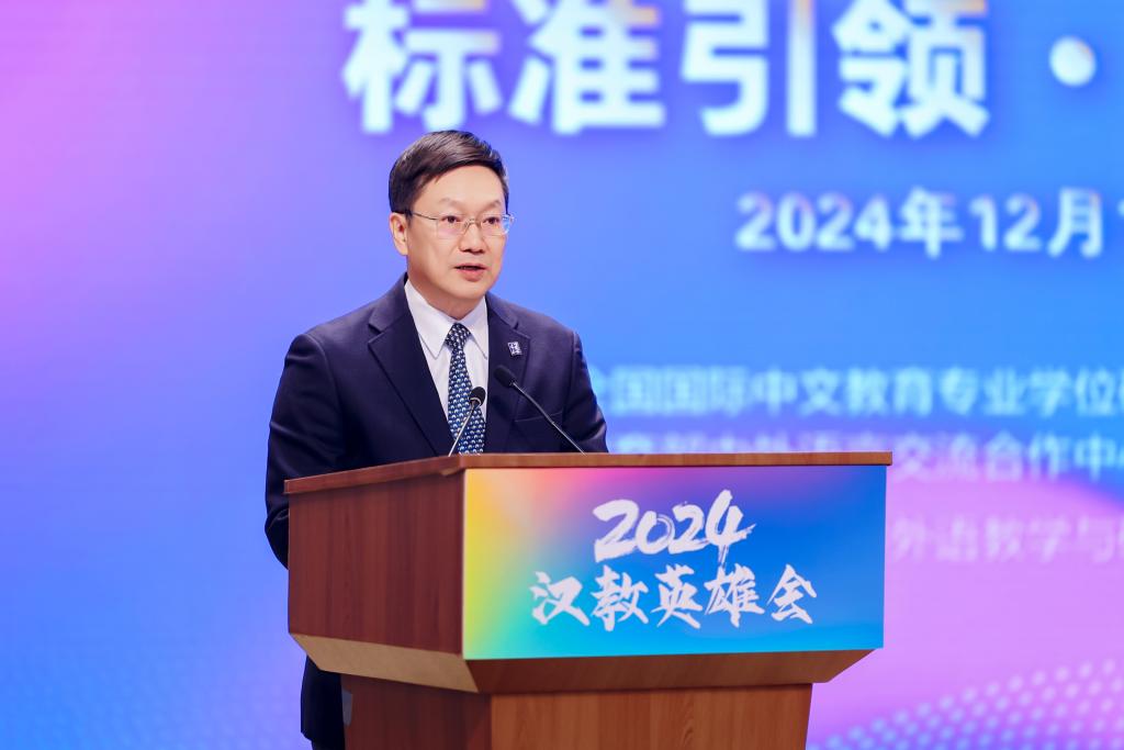胡志平在致辭中重溫習近平主席致2024世界中文大會賀信的重要精神。他指出,國際中文教育是一項光榮而十分有意義的職業選擇,承擔了幫助各國民眾學習中文、了解中國、促進民心相通的重要使命。高水平教師隊伍,是推動和實現國際中文教育高質量發展的重要一環,教學技能和教學實踐能力培養至關重要。舉辦“漢教英雄會”,是為國內外專業教師和后備隊伍提供交流切磋和觀摩實踐的平臺,幫助大家在交流互鑒中共同發展。