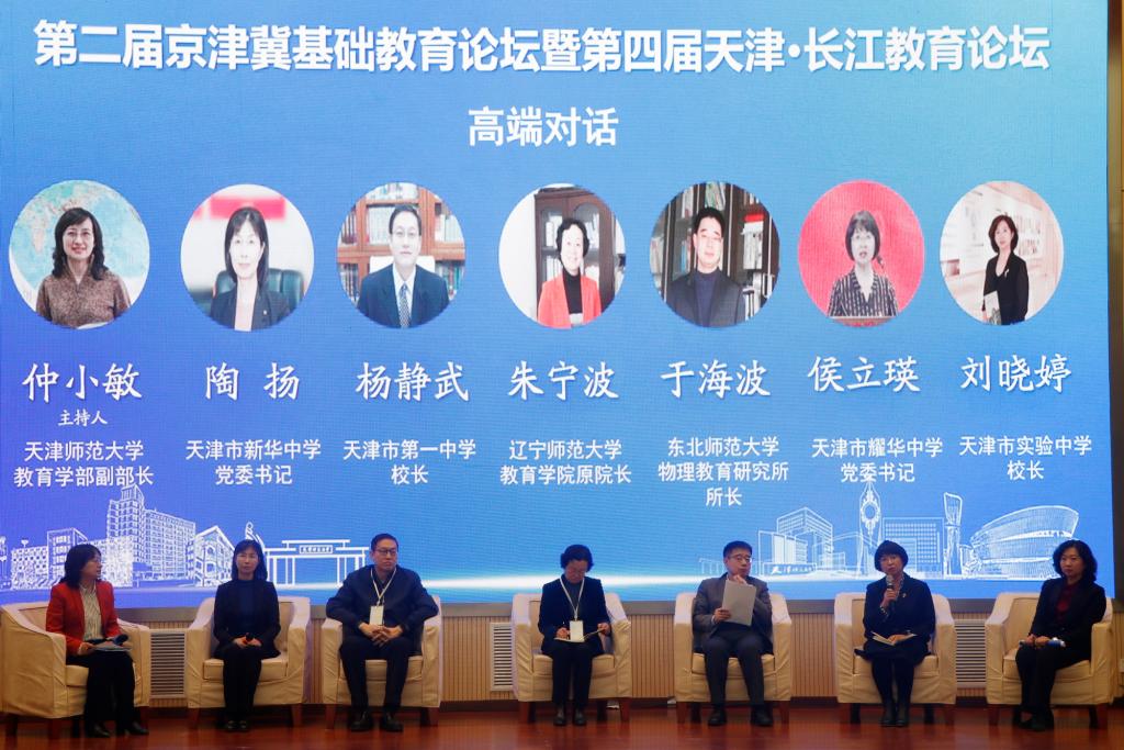 在高端對話環節,國家“萬人計劃”教學名師、遼寧師范大學教育學部教授朱寧波,東北師范大學教授于海波,天津市第一中學校長楊靜武,天津市耀華中學黨委書記侯立瑛,天津市新華中學黨委書記陶揚,天津市實驗中學校長劉曉婷6位專家分別就跨學科主題學習的意義理解、中華優秀傳統文化融入基礎教育、學校特色課程建設、新時代育人方式變革、基礎教育協同發展等議題展開對話,展示前沿研究成果與豐富的實踐經驗,為京津冀基礎教育發展提供思想啟示和實踐范例。