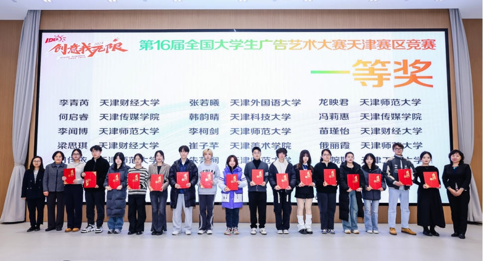 本站訊(通訊員 高宇)12月19日下午,第16屆全國大學(xué)生廣告藝術(shù)大賽天津賽區(qū)競賽頒獎典禮在天開高教科創(chuàng)園(核心區(qū))大報告廳舉行。全國大學(xué)生廣告藝術(shù)大賽組委會秘書長劉瑞武,天津師范大學(xué)黨委宣傳部部長潘暉、教務(wù)處處長豐向日,天津市教育委員會高教處張必蘭出席活動,天津師范大學(xué)新聞傳播學(xué)院有關(guān)負(fù)責(zé)同志,京津兩地知名廣告人及來自天津30余所高校的獲獎師生300余人參加活動。