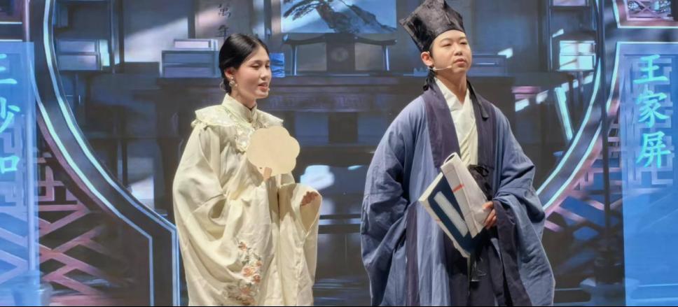 總決賽共設置人文知識問答、格律詩寫作、經史論議和人文演繹等四個環節,全面考察團隊成員的綜合人文素養。比賽中,我校代表隊表現沉穩,展現了深厚的知識儲備、敏捷的思維能力和出色的團隊協作精神。5名隊員扎實的學術素養、良好的心理素質以及精彩的現場演繹,贏得了在場評委和觀眾的一致好評。尤其在人文演繹環節,我校代表隊演繹的《守藏》以石鼓貫穿古今,以對中華文化的保護與傳承為主題,通過演繹前輩先賢對文物的珍視、保護,展現了不同歷史背景下中華兒女對中華文化的重視與熱愛。全劇通過對歷史的回顧和對未來的展望,激勵中華兒女珍視文化遺產,堅定文化自信,為中華民族的偉大復興貢獻力量。精彩的演出感動得現場觀眾熱淚盈眶,演出結束后,全場響起熱烈的掌聲。