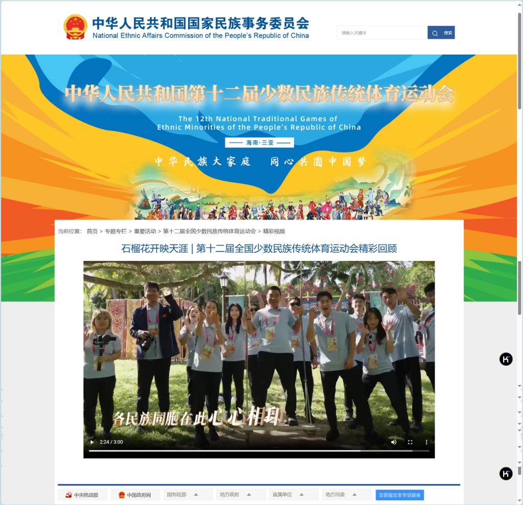 參賽過程中,我校師生得到了中國體育報、國家民族事務委員會官網、國家體育總局官網、海南日報、三亞電視臺等眾多媒體和平臺的聚焦報道。此外,我校將以此次參賽為契機,不斷做好中華優秀傳統文化在高校的活態傳承和研究工作。