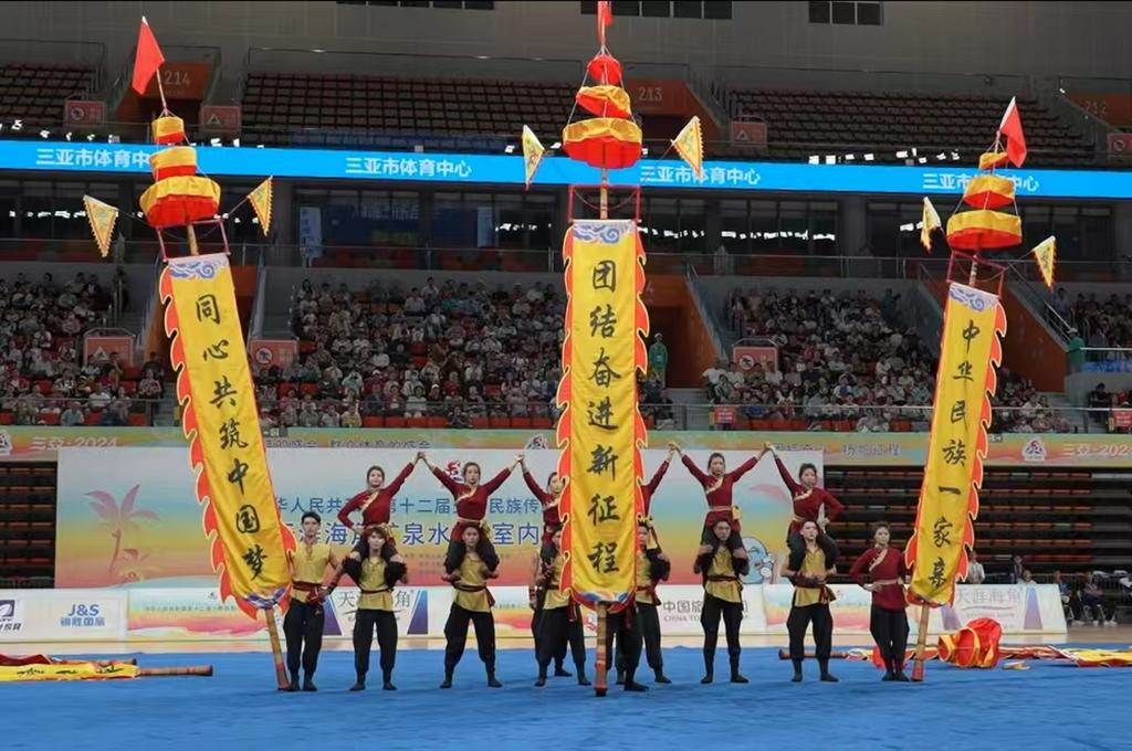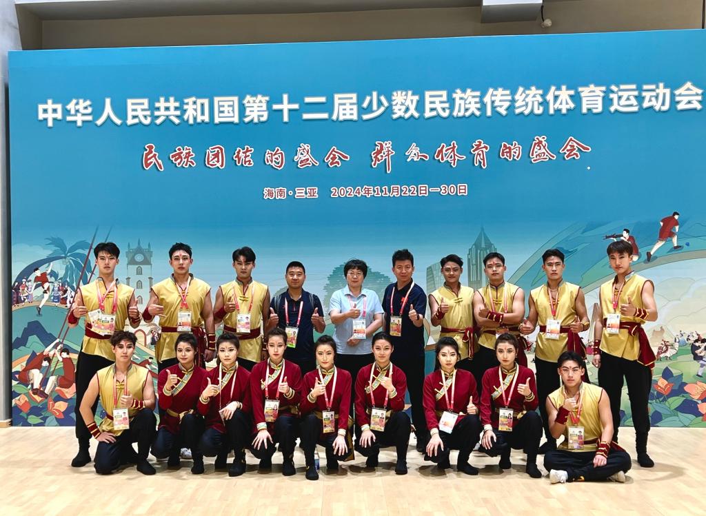 本站訊(通訊員 呂天宇)日前,中華人民共和國第十二屆少數民族傳統體育運動會在海南省三亞市舉辦。我校“宮前中幡”榮獲該賽事表演項目(技巧類)二等獎。