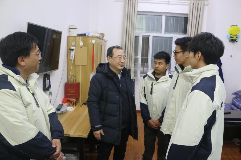 在支教團駐地公寓,曲凱一行實地了解支教團住宿條件與生活環境,與師生們在駐地食堂共進晚餐并為支教團成員發放慰問品,現場氣氛溫馨歡快。