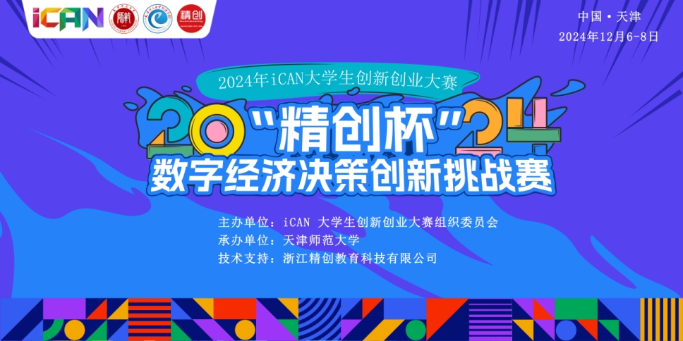 iCAN大學(xué)生創(chuàng)新創(chuàng)業(yè)大賽由北京大學(xué)于2007年發(fā)起,由中國(guó)信息協(xié)會(huì)主辦。2010年,獲批成為《教育部、財(cái)政部關(guān)于批準(zhǔn)2010年度大學(xué)生競(jìng)賽資助項(xiàng)目的通知》大學(xué)生競(jìng)賽資助項(xiàng)目;2023年,大賽入選《全國(guó)普通高校大學(xué)生競(jìng)賽分析報(bào)告》競(jìng)賽目錄。“精創(chuàng)杯”數(shù)字經(jīng)濟(jì)決策創(chuàng)新挑戰(zhàn)賽為該賽事挑戰(zhàn)賽道系列賽之一。該賽事區(qū)域選拔賽于2024年9月14日結(jié)束,共有來(lái)自全國(guó)各地近400所院校的2000余支隊(duì)伍參賽,最終有169支團(tuán)隊(duì)入圍全國(guó)總決賽。