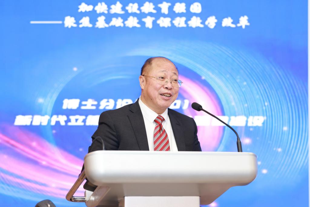 馮建軍在致辭中表示,習近平總書記在全國教育大會上指出,要堅持不懈用新時代中國特色社會主義思想鑄魂育人,實施新時代立德樹人工程。教育是國之大計、黨之大計,教育工作要全面貫徹黨的教育方針,把立德放在人才培養首位,遵循教育規律和人才成長規律,不斷健全全員育人、全過程育人、全方位育人的體制機制,大力培養德智體美勞全面發展的社會主義建設者和接班人。“國無德不興,人無德不立”,育人的根本在于立德。本次博士分論壇的主題是“新時代立德樹人與教育強國建設”,就是要進一步全面貫徹落實全國教育大會精神,準確理解和把握立德樹人與教育強國建設的關系,深入探討立德樹人的內涵,提出系統化的落實機制。作為學者、教育者,要高度重視立德樹人與教育強國建設的雙向互動,以實際行動做立德樹人的能者、強者和教育強國的研究者、實踐者。