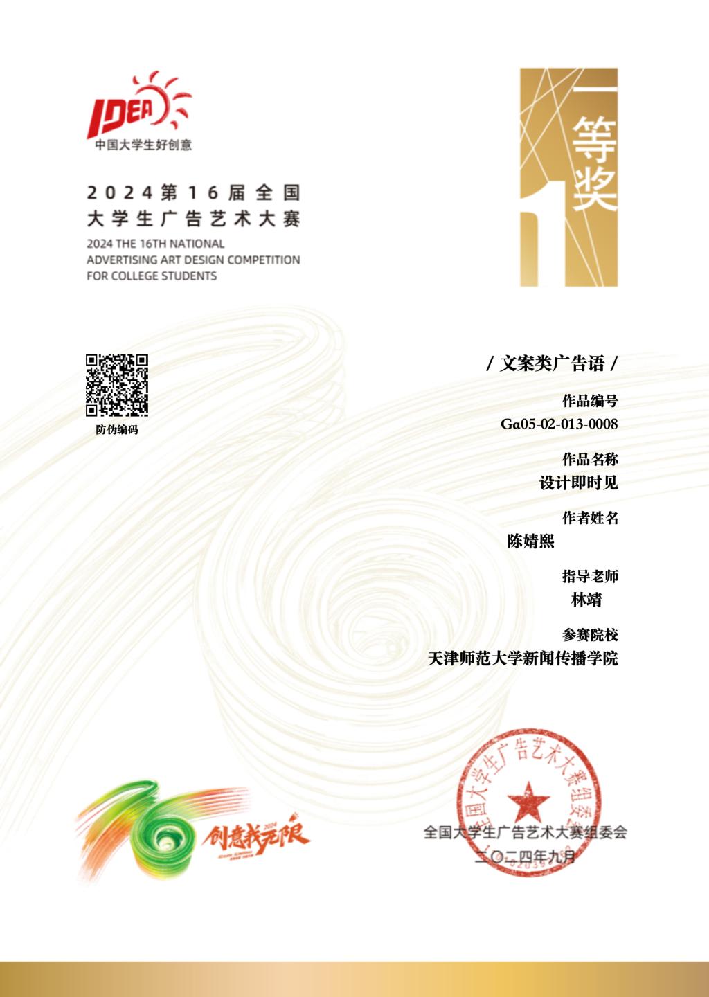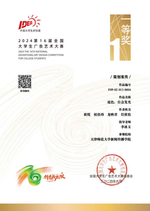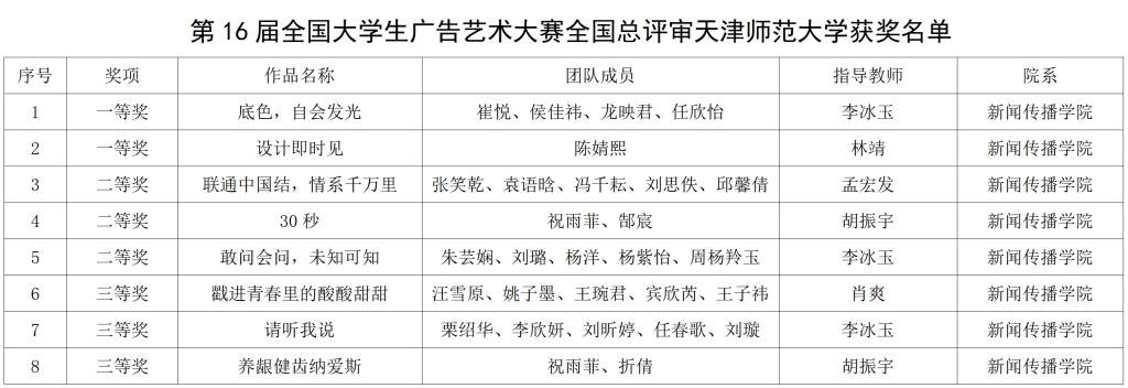 附:第16屆全國大學生廣告藝術大賽全國總評審天津師范大學獲獎名單