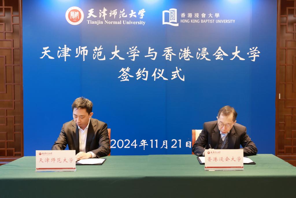 本站訊(通訊員 毛雁)11月21日上午,天津師范大學與香港浸會大學合作協議簽約儀式在我校舉行。香港浸會大學授權代表、理學院院長吳國寶,我校黨委常委、副校長陳玳瑋出席儀式,我校港澳臺工作辦公室、數學科學學院等單位負責人參加。