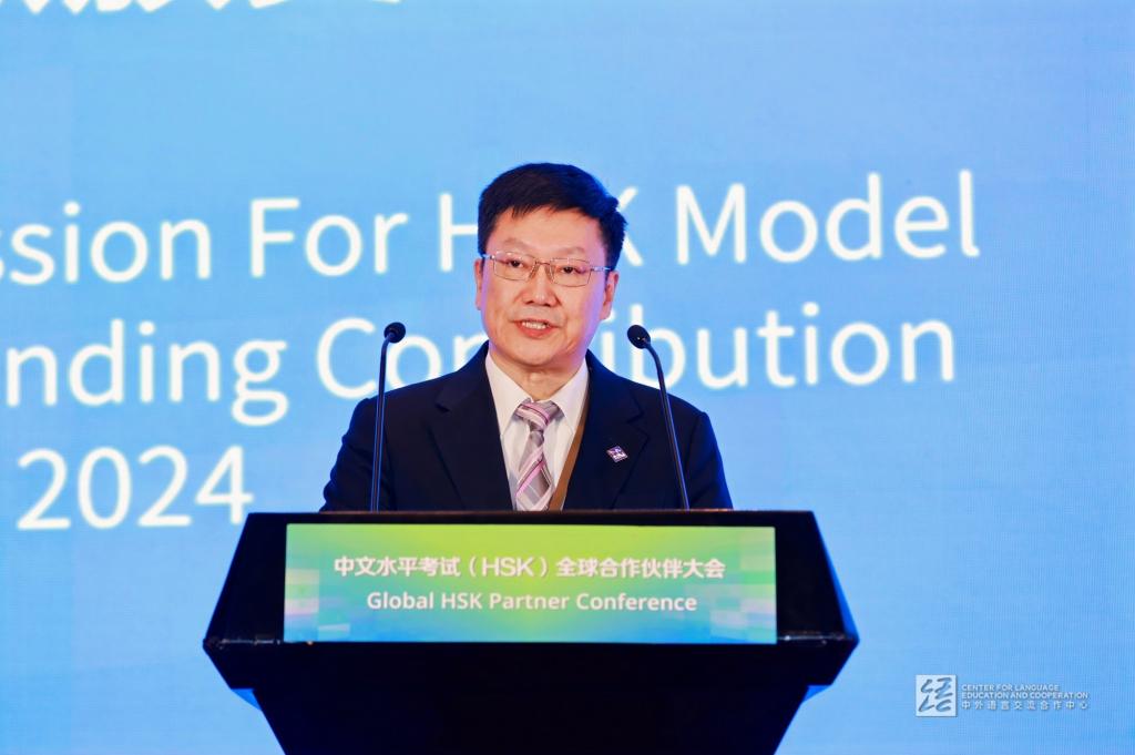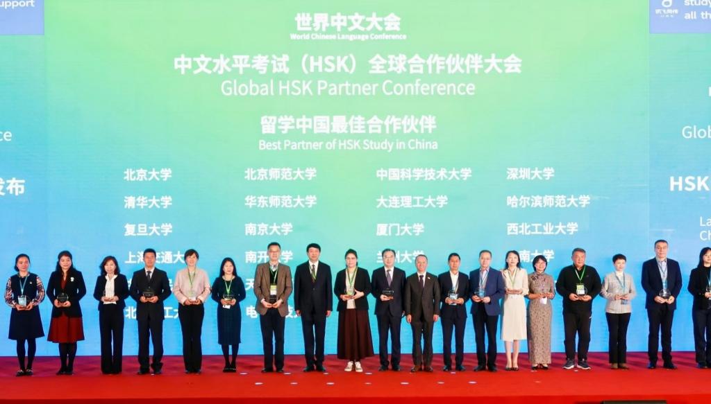 大會期間,曲凱還代表學校接受2024中文水平考試(HSK)“最佳合作伙伴”獎并赴世界中文大會語言展看望我校參展代表。