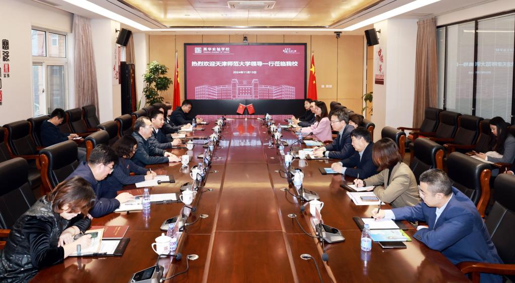 本站訊(通訊員 袁婧)11月13日上午,校黨委書記曲凱率隊赴天津英華實驗學(xué)校交流調(diào)研并開展訪企拓崗,與英華實驗學(xué)校理事長、校務(wù)委員會主任、總校長林向陽進行工作會談。英華實驗學(xué)校校務(wù)委員會副主任、校長梁棟,校黨總支副書記、常務(wù)副校長張濤,我校黨委常委、副校長陳玳瑋參加活動。
