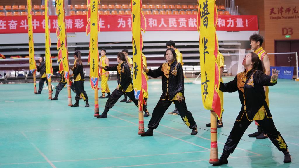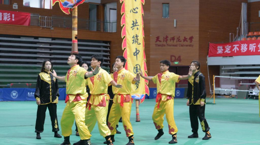 天津師范大學(xué)“宮前中幡”團(tuán)隊(duì)將參加全國(guó)少數(shù)民族傳統(tǒng)體育運(yùn)動(dòng)會(huì)表演項(xiàng)目(技巧類)比賽?!皩m前中幡”是獨(dú)具天津地方特色的一種技巧類表演。該表演在清朝時(shí)期的天津“皇會(huì)”中備受歡迎,盛極一時(shí),于2020年入選全國(guó)《傳承的力量》欄目,現(xiàn)為天津市非物質(zhì)文化遺產(chǎn)。