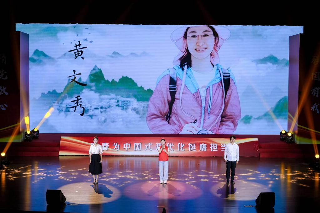 《誰是最可愛的人》《紅手印,鼓起改革開放的春風》《百年圓夢》《致敬人民》《強國力量》《請黨放心,強國有我》等詩歌朗誦重溫了中國共產黨百折不撓、艱辛求索、波瀾壯闊、壯麗輝煌的偉大歷程,表達了師生對革命先輩們英勇無畏和無私奉獻精神的崇高致敬。