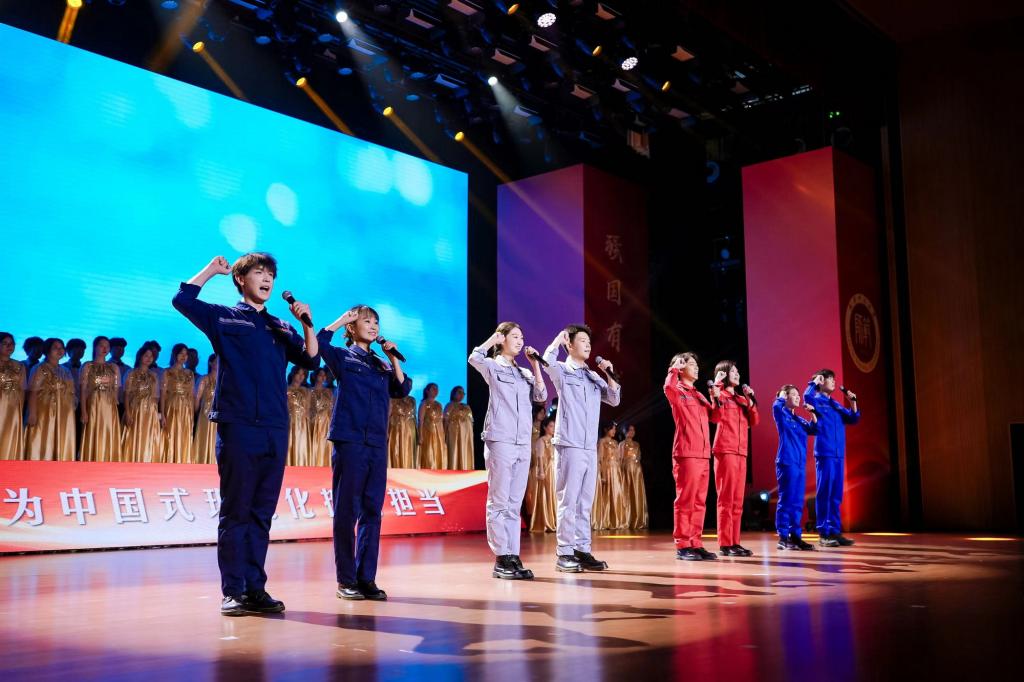 本次主題思政課以經典紅色文藝作品為主線,遴選當代愛國主義題材的經典音樂、詩歌朗誦作品,以沉浸式主題思政課的形式,帶領全場師生回溯中國共產黨帶領全國各族人民在實現中華民族偉大復興征程中的奮斗足跡。