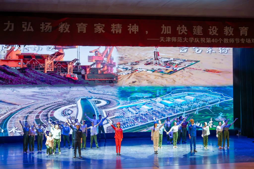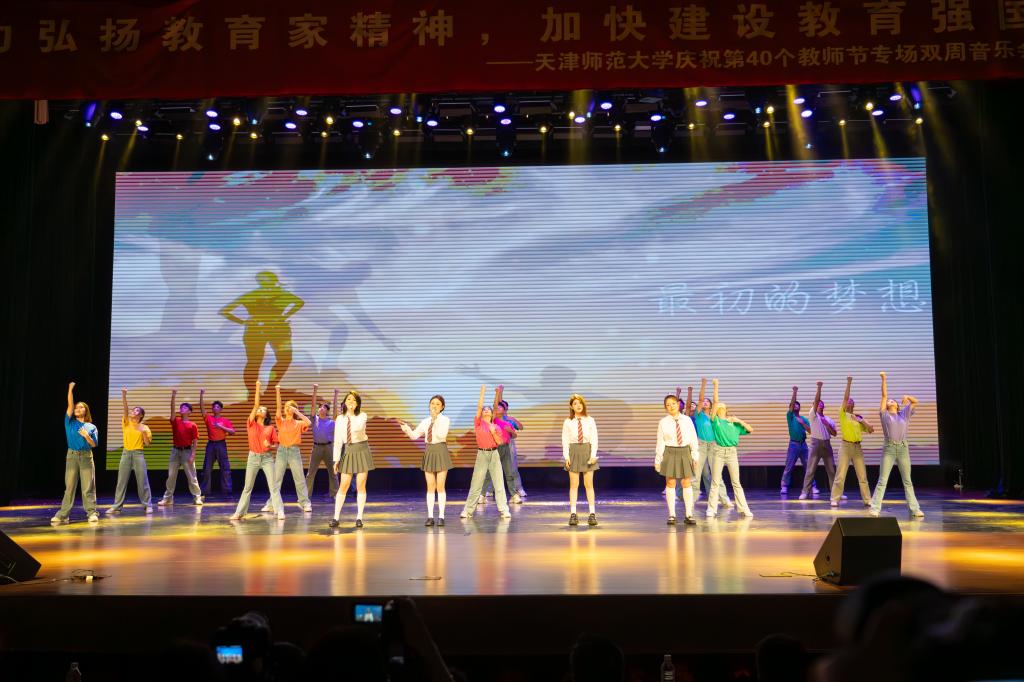 在慶祝第40個教師節專場雙周音樂會上,獲得全國第七屆大學生藝術展演二等獎的校園短劇《徐大同》片段再現舞臺。校園短劇《徐大同》弘揚了我國著名政治學家、法學家,天津師范大學資深教授徐大同先生始終堅守三尺講臺,“教學問、教做學問、教做人”的大先生精神,激勵廣大教師努力培養更多讓黨放心、愛國奉獻、擔當民族復興重任的時代新人。
