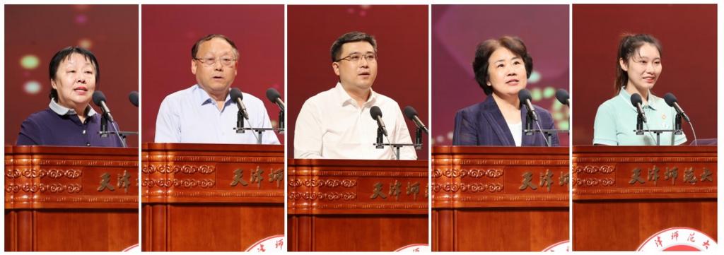 從教三十年教師代表新聞傳播學(xué)院王艷玲教授深情回憶了工作以來(lái)親身感受到學(xué)校日新月異的發(fā)展變化和對(duì)教師職業(yè)堅(jiān)定的熱愛(ài)。天津市優(yōu)秀教師代表馬克思主義學(xué)院楊仁忠教授從家國(guó)情懷和育人匠心、“課堂高于天”的信念、以學(xué)術(shù)講好政治和秉持服務(wù)育人理念四個(gè)方面,分享了從教40年的收獲與感悟。全國(guó)模范教師教育學(xué)部李洪修教授分享了個(gè)人大力弘揚(yáng)和傳承教育家精神,推進(jìn)教育強(qiáng)國(guó)建設(shè)的實(shí)踐體會(huì)。全國(guó)教育系統(tǒng)先進(jìn)集體心理學(xué)部黨委書(shū)記展冬表達(dá)了學(xué)部全體師生為心理學(xué)科高質(zhì)量發(fā)展續(xù)寫新篇章的決心。學(xué)生代表生命科學(xué)學(xué)院師范專業(yè)本科生陳芮婷講述了在學(xué)習(xí)和科研道路上受老師們言傳身教的影響,表達(dá)了作為師范生的責(zé)任感與使命感。