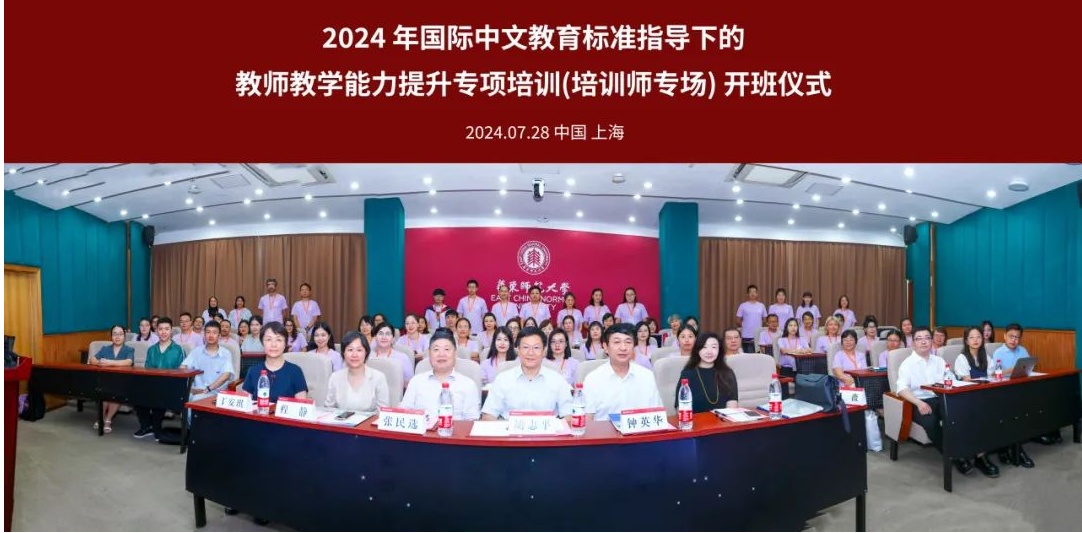部校共建國際中文教育發(fā)展研究院消息(通訊員 趙英東)7月28日,2024年國際中文教育標(biāo)準(zhǔn)指導(dǎo)下的教師教學(xué)能力提升專項培訓(xùn)(培訓(xùn)師專場)在華東師范大學(xué)開班。中外語言交流合作中心副主任胡志平、華東師范大學(xué)副校長程靜出席開班儀式并致辭,來自21個國家的40名本土核心教師及20名國內(nèi)骨干中文教師參加培訓(xùn)。世界漢語教學(xué)學(xué)會會長、天津市政協(xié)科教委副主任、我校部校共建國際中文教育發(fā)展研究院院長鐘英華受邀出席大會并致辭。開班式由華東師范大學(xué)國際漢語文化學(xué)院常務(wù)副院長丁安琪主持。