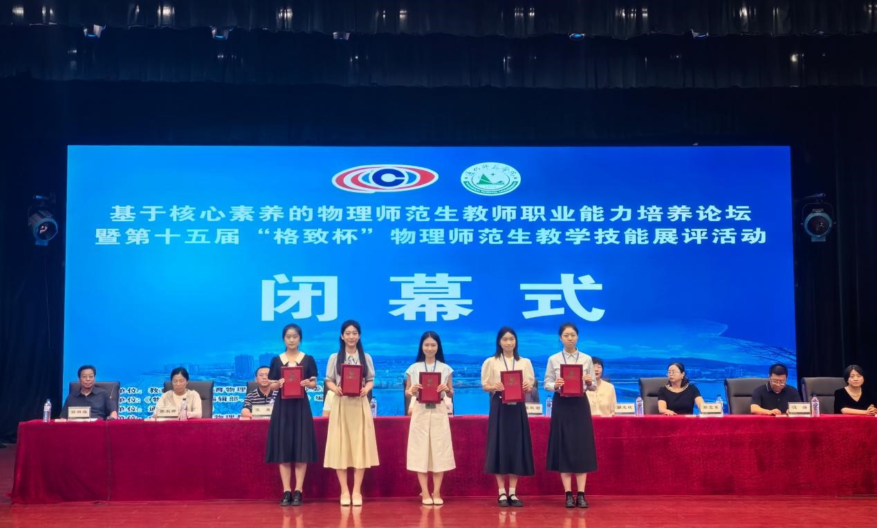 物理與材料科學學院消息(通訊員 郝健強)7月19日至21日,基于核心素養的物理師范生教師職業能力培養論壇暨第十五屆“格致杯”全國物理師范生教學技能展評活動在通化師范學院舉行。經過緊張激烈的比賽,我校物理與材料科學學院5名選手表現出色,成績喜人。在教學技能交流展示活動中,施芷妍、林慧玲、高可瑩、陳雨馨、劉蕊榮獲一等獎;其中,施芷妍和林慧玲獲推參與閉幕式優質課展示;在創新實驗設計與自制教具展示活動中,施芷妍、林慧玲榮獲一等獎,高可瑩、陳雨馨、劉蕊榮獲二等獎;天津師范大學榮獲“優秀組織獎”和“特殊貢獻獎”,創造參加該項活動最好成績。