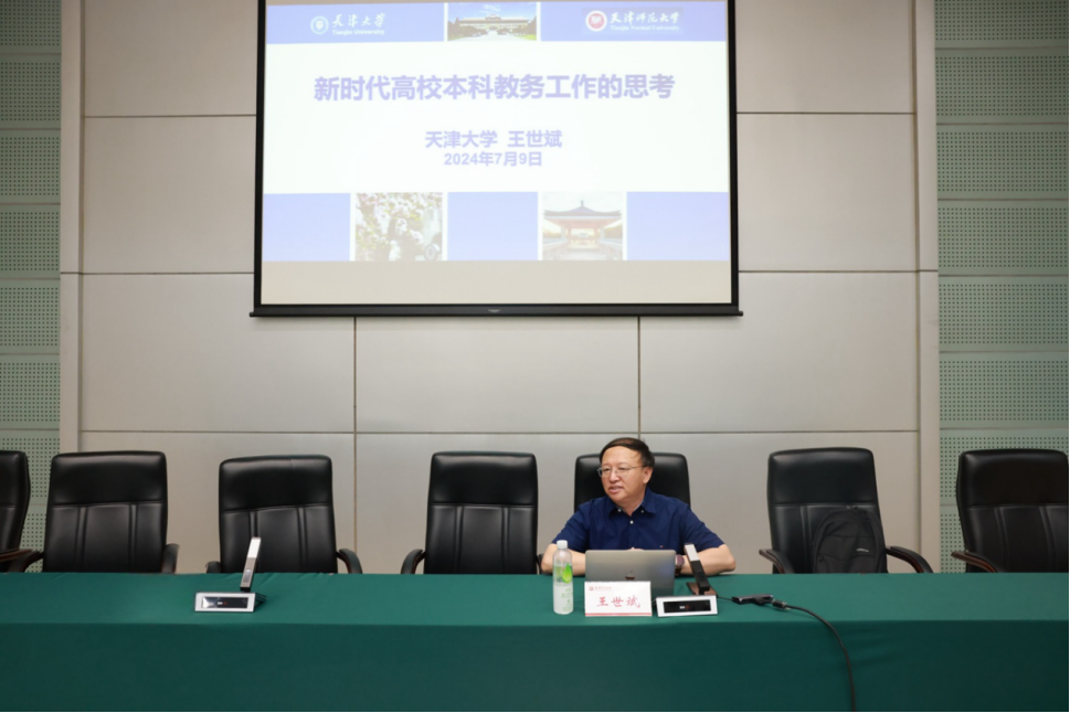 王世斌以“新時代高校本科教務工作的思考”為題,從大學發展挑戰與機遇、學校事業與師生成長、教學學術與人才培養三個方面進行了分享交流。他提出,繼承優良傳統、學深悟透思想、多樣包容規范,把握教育規律、服務師生發展、培養一流人才,依靠廣大師生、推進教育改革、提升管理水平是教務工作的基本思路,組織愿景、團隊使命、教師和學生發展是本科教務工作的價值追求。這為我校探索本科教學管理新路徑、推動教學質量和管理效能雙提升帶來了新的啟發和思考。