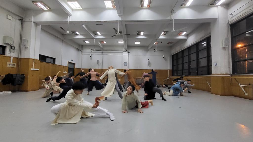 群舞《覺悟的宣言》以周恩來總理在覺悟社成立時寫下的一段話為題——“我們全是學生,絕不敢說已經‘覺悟’,我們的決心就是齊心努力向‘覺悟’道上走。努力!奮斗!”這段話也刻在了天津覺悟社紀念館的墻壁上。該作品主要描繪了以周恩來為代表的覺悟社成員在革命年代進行斗爭的英勇事跡,其不屈的精神為黑暗的監獄生活帶來了曙光。作品運用了以群舞為主的表現形式,結合獨舞、雙人舞的交叉與貫通進行角色的區分并按照整體敘事結構推進故事發展。