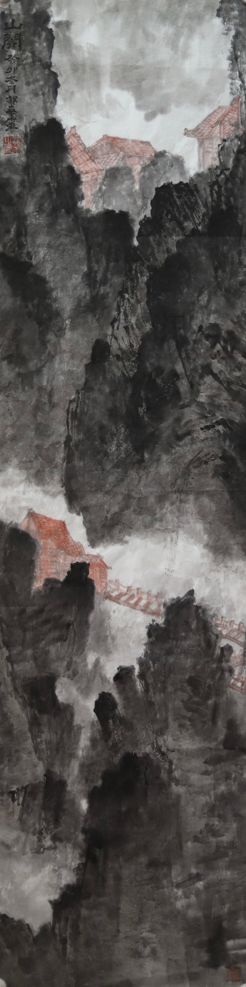 邵燊的作品《山閣》同樣由孫巖教授指導,于張家界采風回校后創作。作品呈現出張家界袁家界景區獨特地貌和景觀,描繪出“白云深處有人家”的唯美意境。