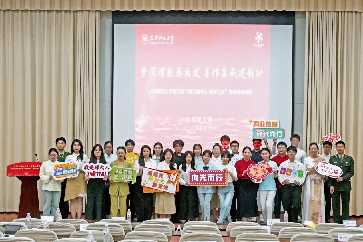作為我校朋輩引領(lǐng)重要特色品牌項(xiàng)目之一,“師大圓夢(mèng)人”展示評(píng)選活動(dòng)自2016年至今已連續(xù)舉辦九屆,通過選樹學(xué)生身邊拼搏奮斗的“追夢(mèng)”榜樣、具備師大特質(zhì)的“圓夢(mèng)”典型,引領(lǐng)、激勵(lì)廣大學(xué)生學(xué)習(xí)榜樣、拼搏奮斗、努力成才,充分展現(xiàn)了我?!盀辄h育人、為國(guó)育才”的職責(zé)使命和育人成效。今后,我校將繼續(xù)把學(xué)習(xí)宣傳貫徹習(xí)近平總書記視察天津重要講話精神作為首要政治任務(wù),圍繞“四個(gè)善作善成”,持續(xù)深化凝練具有師大特色的“一體化”育人理念,促進(jìn)學(xué)生全面發(fā)展,增強(qiáng)學(xué)生綜合素質(zhì),切實(shí)提升人才培養(yǎng)質(zhì)量,激勵(lì)廣大青年堅(jiān)定不移聽黨話、跟黨走,為中國(guó)式現(xiàn)代化挺膺擔(dān)當(dāng),立志做讓黨放心、愛國(guó)奉獻(xiàn),擔(dān)當(dāng)民族復(fù)興大任的時(shí)代新人。