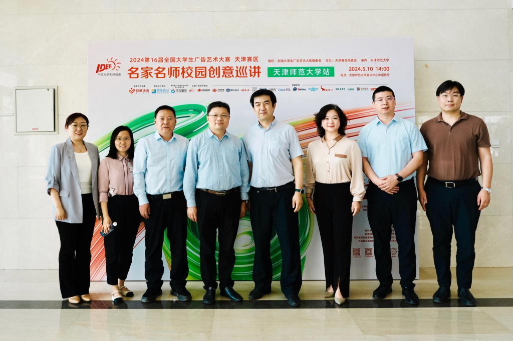 新聞傳播學(xué)院消息(通訊員 高宇)2024年5月10日,第16屆全國(guó)大學(xué)生廣告藝術(shù)大賽天津賽區(qū)啟動(dòng)儀式在天津師范大學(xué)會(huì)議中心報(bào)告廳舉行。本次巡講活動(dòng)由全國(guó)大學(xué)生廣告藝術(shù)大賽組委會(huì)組織,大廣賽天津賽區(qū)組委會(huì)主辦,天津師范大學(xué)新聞傳播學(xué)院承辦。天津市教委高教處處長(zhǎng)徐震、天津師范大學(xué)黨委常委、副校長(zhǎng)佟德志出席活動(dòng)并致辭,教務(wù)處、新聞傳播學(xué)院、大廣賽天津賽區(qū)專家委員會(huì)等有關(guān)部門主要負(fù)責(zé)人參加活動(dòng)。本次大廣賽天津賽區(qū)支持方中國(guó)人壽財(cái)產(chǎn)保險(xiǎn)股份有限公司天津分公司、特邀企業(yè)天津市新力靈弈廣告?zhèn)鞑ビ邢薰尽⒁约懊}方天津聯(lián)通、科大訊飛、XPPen、泡泡瑪特、愛(ài)華仕、長(zhǎng)治日?qǐng)?bào)社等品牌或組織的代表共同出席了此次活動(dòng)。天津師范大學(xué)及18所兄弟院校200余名師生到場(chǎng)參與巡講。