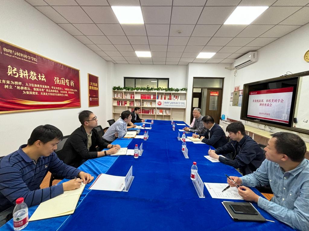 市歐美同學會綜合處處長、二級巡視員牛惠迎,市委統戰部五處副處長陳朋,市歐美同學會綜合處副處長于林、四級調研魏斌;天津師范大學留聯會常務副會長孟廣文、化學學院院長李春舉、經濟學院副院長胡東寧參加座談。